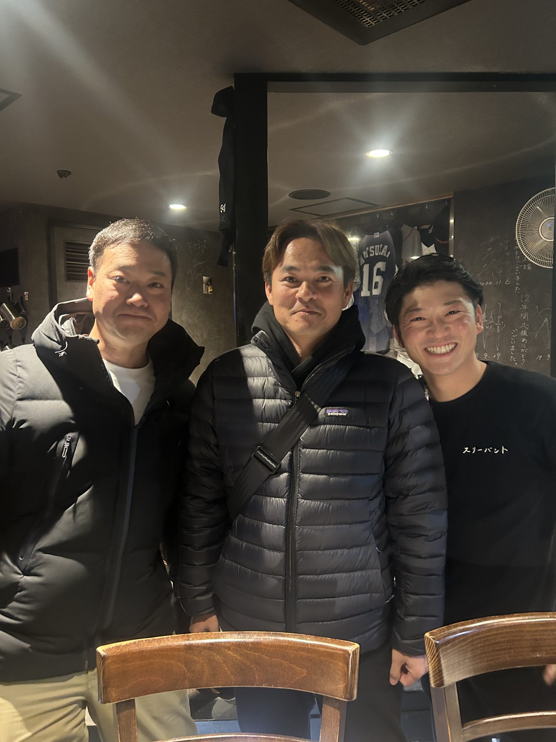 2026.01.17 ブログ 武田久さん加藤辰祐くん 先日、現日本ハムファイターズ、ピッチングコーチの武田久さんがきてくれました😊 武田久さんが数年前まで社会人野球、東海REXでピッチングコーチをしていたご縁で、当時選手だった加藤辰祐くんと丈司とゴルフをした夜のご来店でした🏌️♂️ 今年は日ハムは名古屋での試合がないので、次はシーズンオフのご来店になるかもしれませんが、優勝祝勝会ができたら嬉しいです🎉